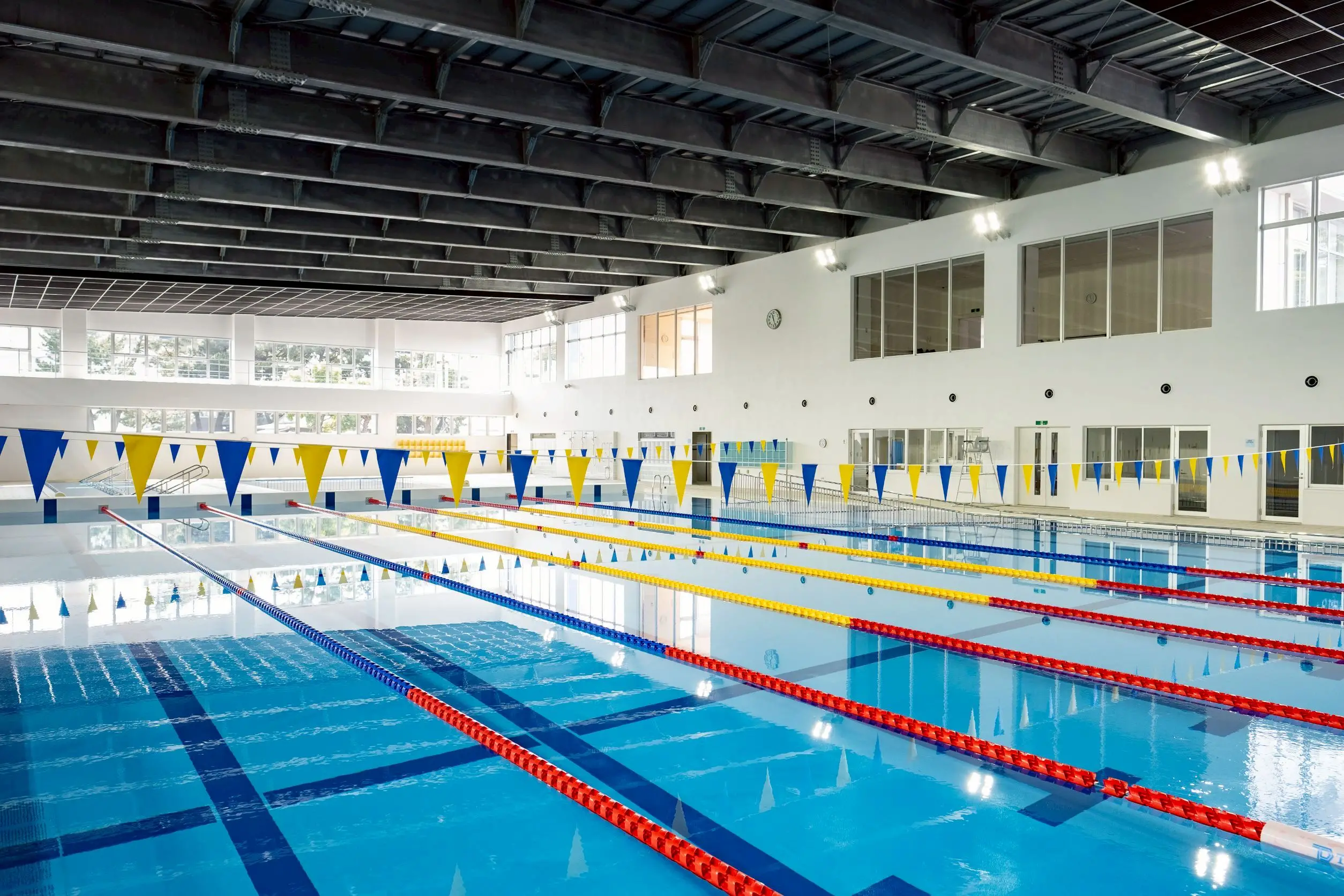 25m×8コースの公認プールから幼児用・歩行専用プールまで完備。トレーニング室や会議室も備え、プールレッスンやスタジオレッスンも充実。